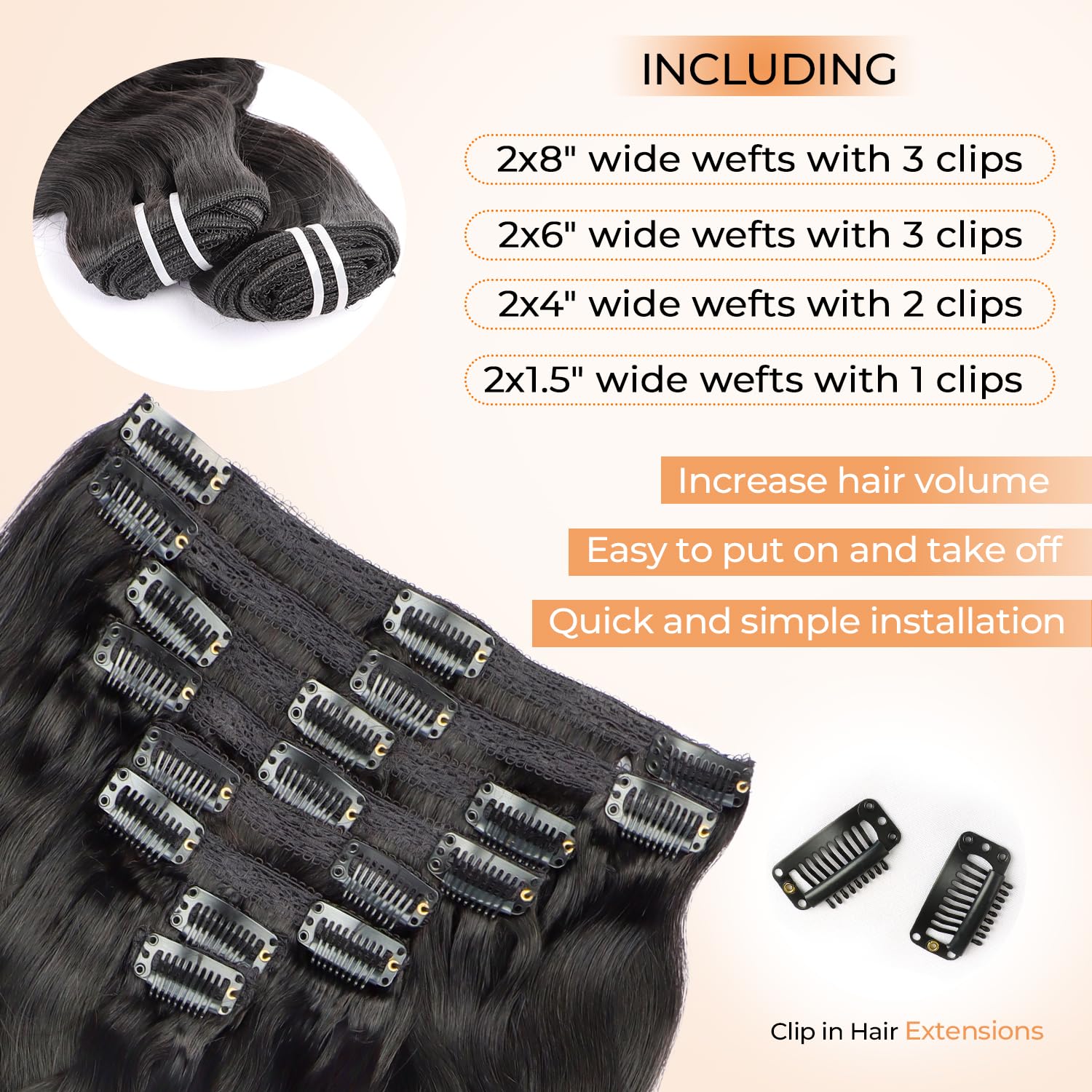 - 【Hair Extension Technique】Handmade lace weft remy human hair clip in extensions, prevent shedding and tangling, neat & tight, no split ends, feeling super softness, breathable and comfortable