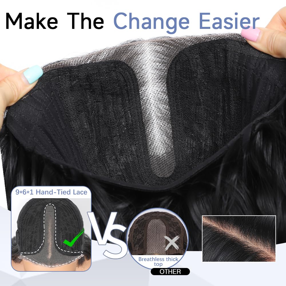 【New upgrade hair seam】9x6x1 Pre Cut lace hairline, which makes it more natural to wear, no need to use glue, does not hurt the forehead skin, easy to wear