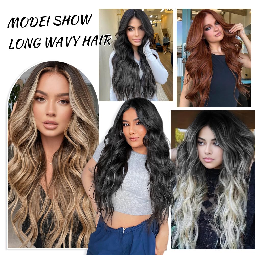 【Natural look】 : The long wavy wig is made of high-temperature resistant synthetic fiber with natural shine and top-quality. The hairline is made hand-tied, which makes the hair look more real. Easy to comb and not easily tangle and hair loss.
